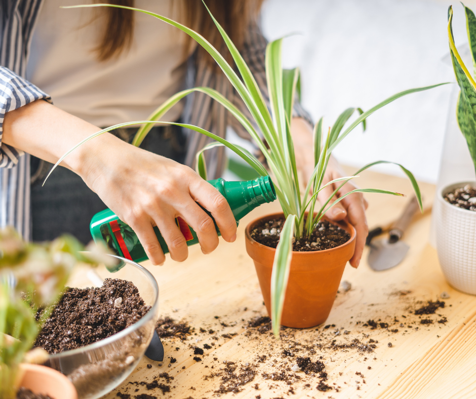 Am besten im Frühjahr, mit frischer Grünpflanzenerde.